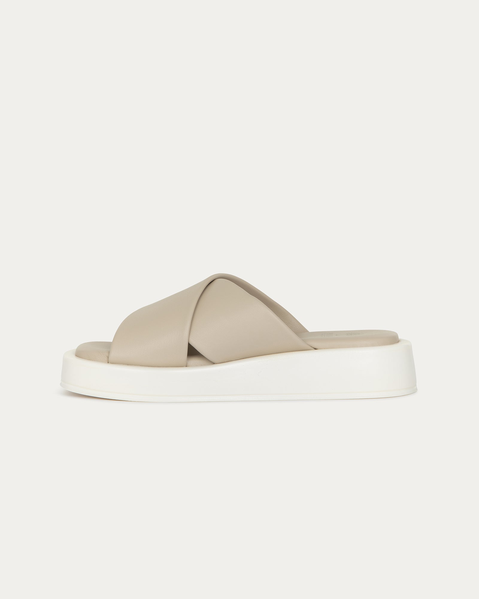 Platform sandals with woven strap made of soft recycled material and microlite.