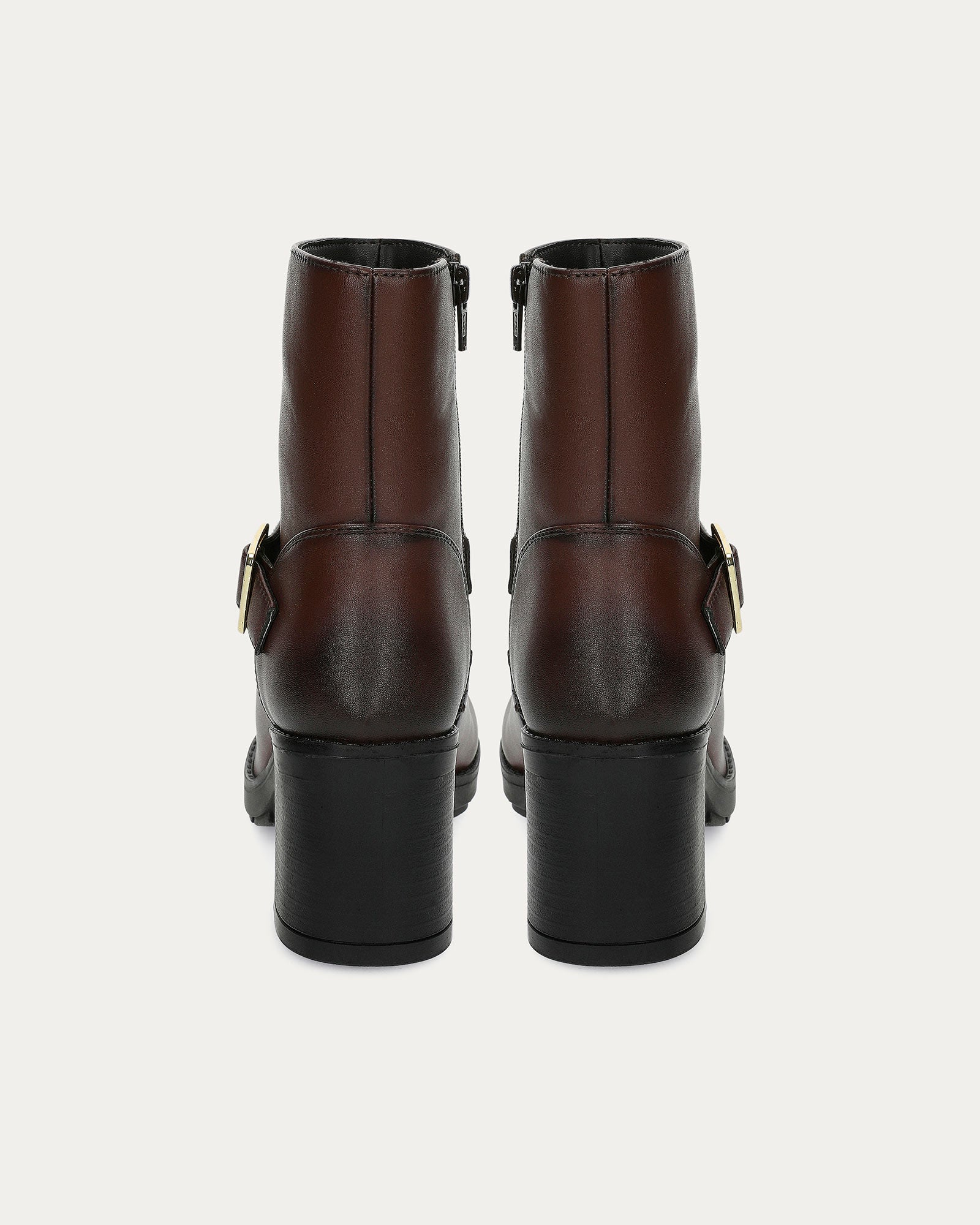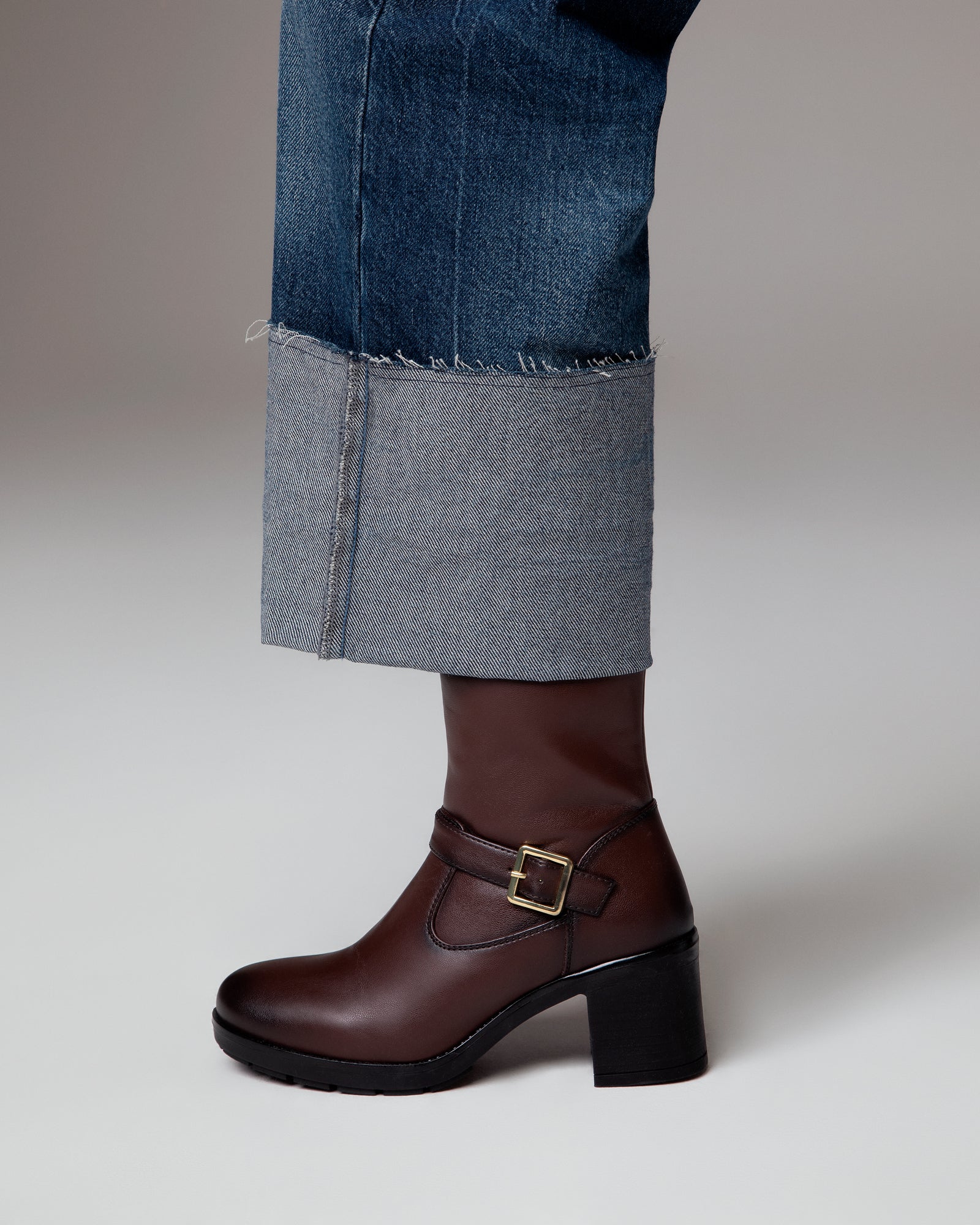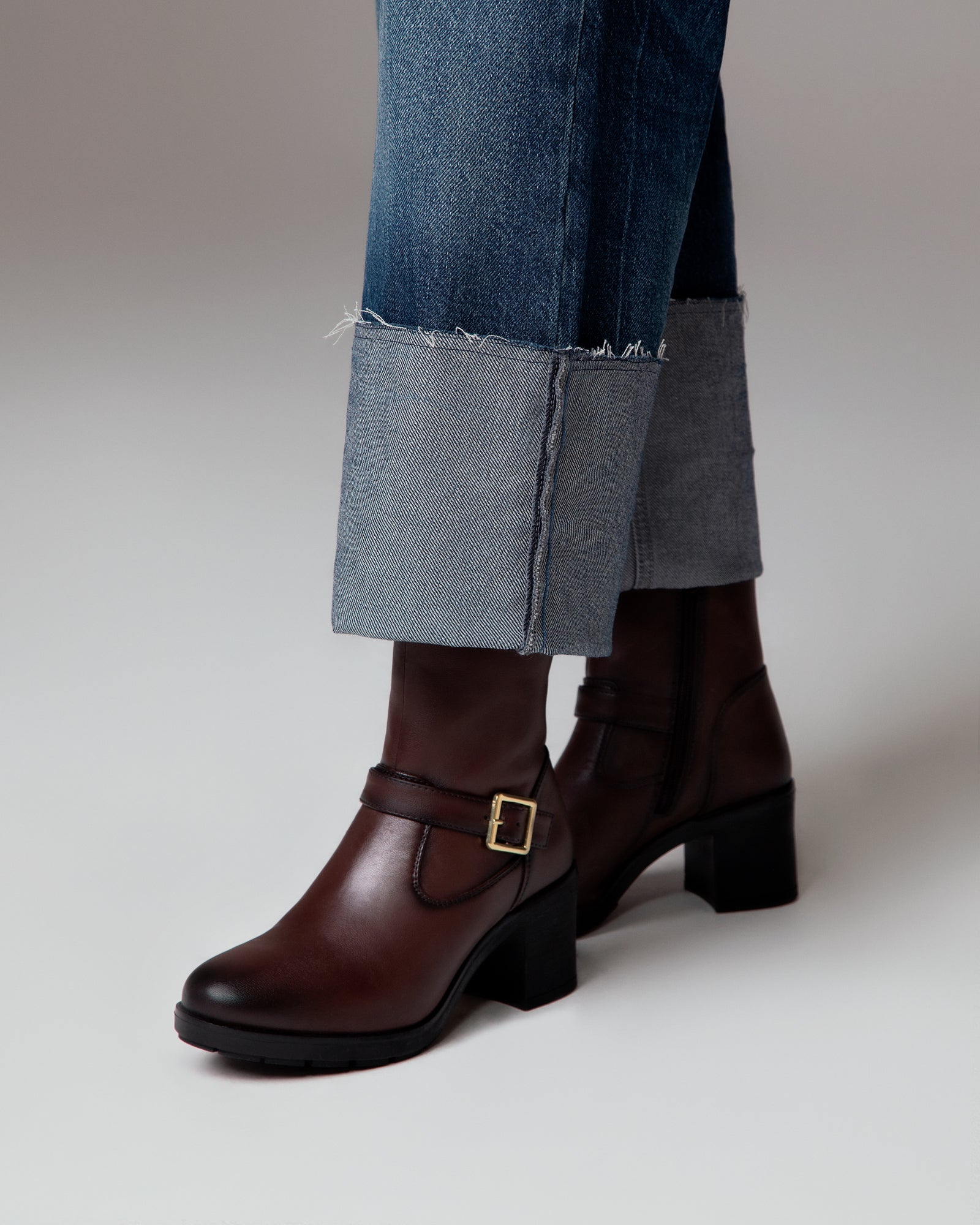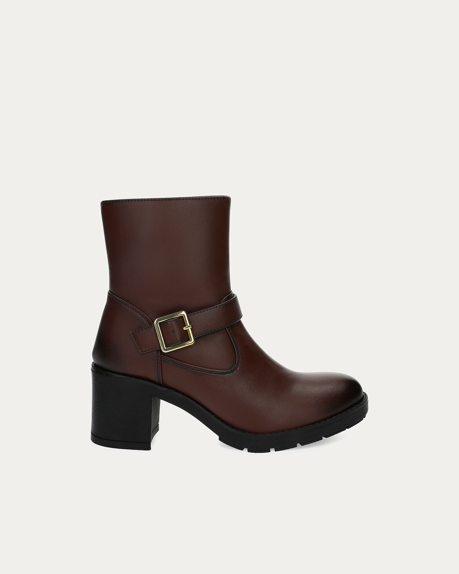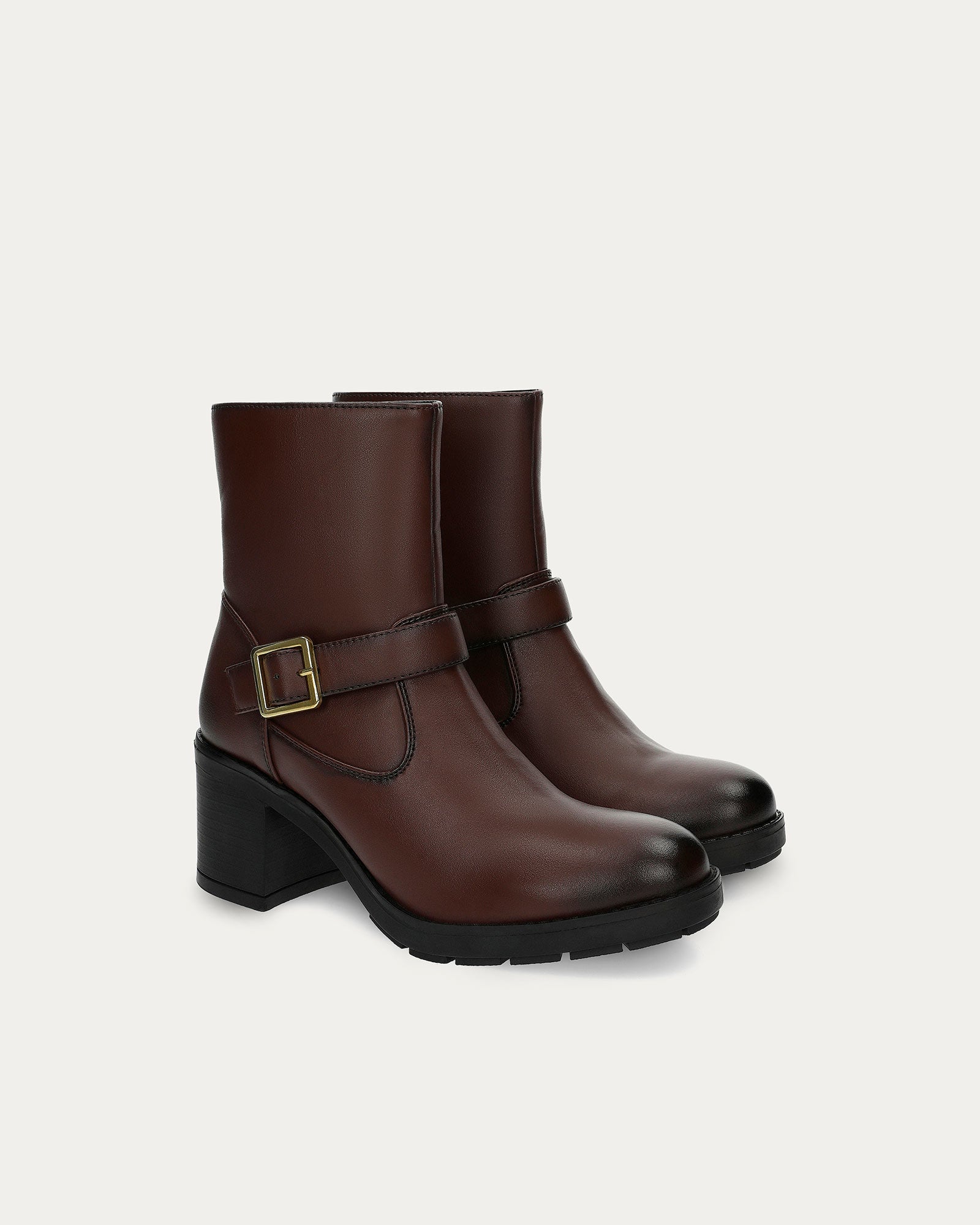 Lightweight brown ankle boots with square heel and side zip for easy entry of the foot.