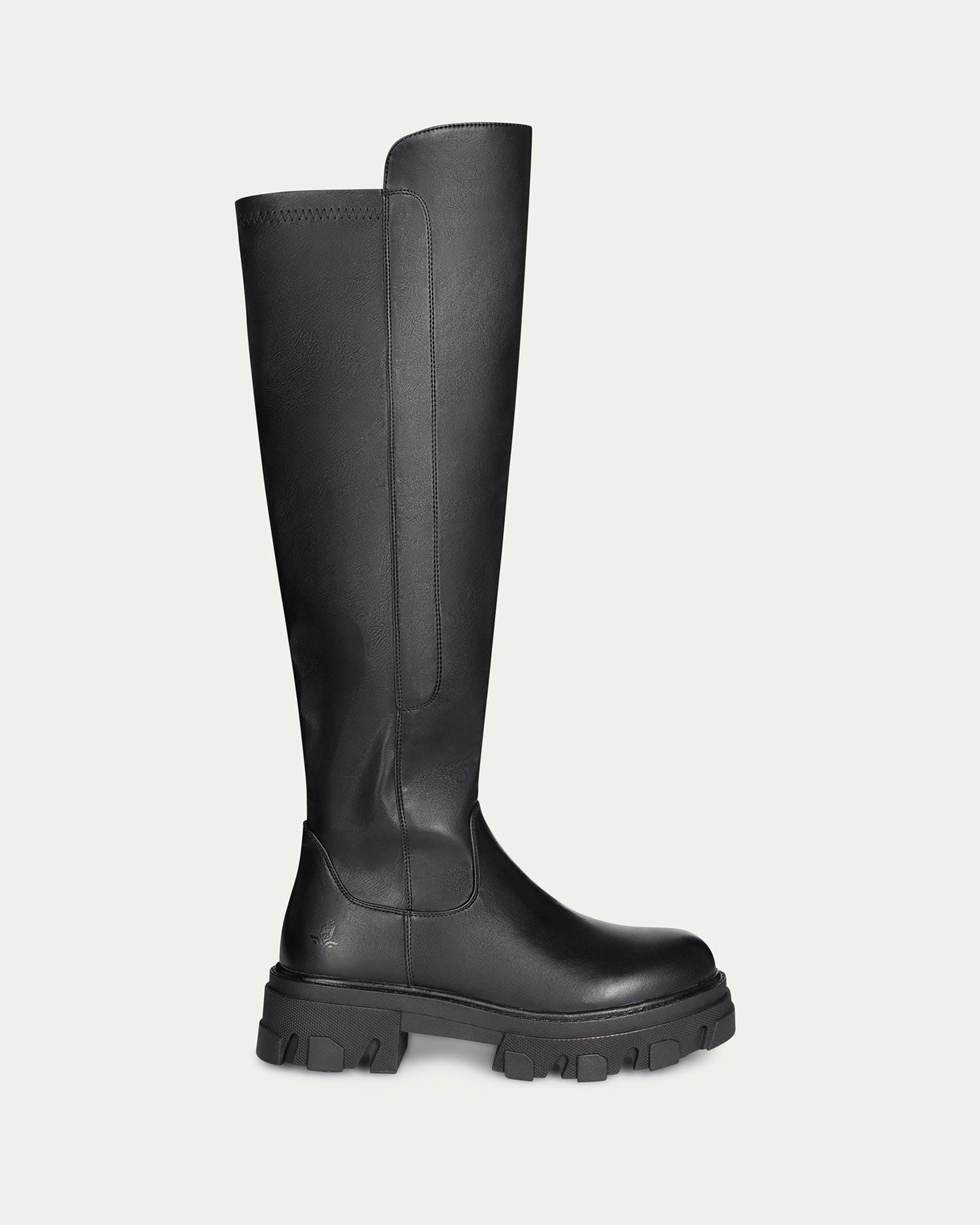 Vegan knee-high stretch boots with side zip.
