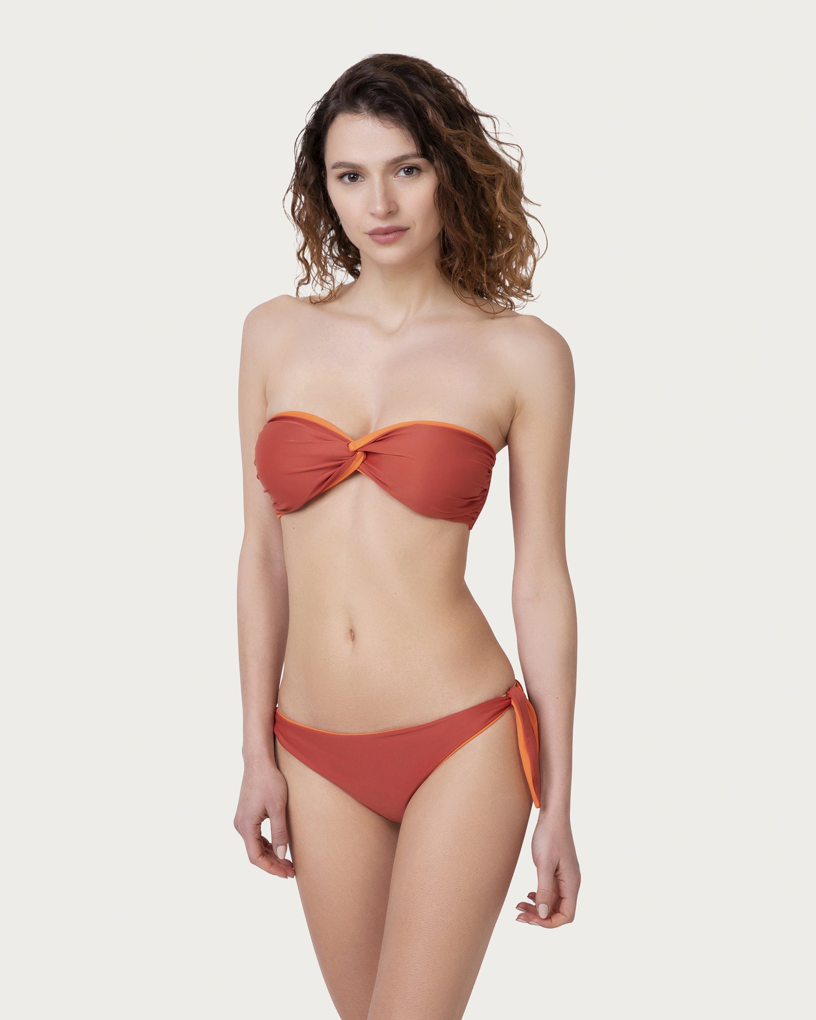 Bikini con nodo reversibile Nespola/Terracotta sostenibile