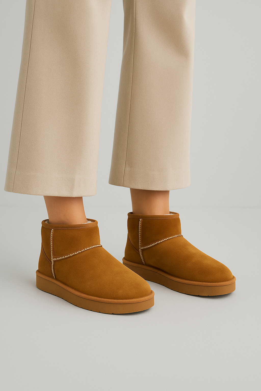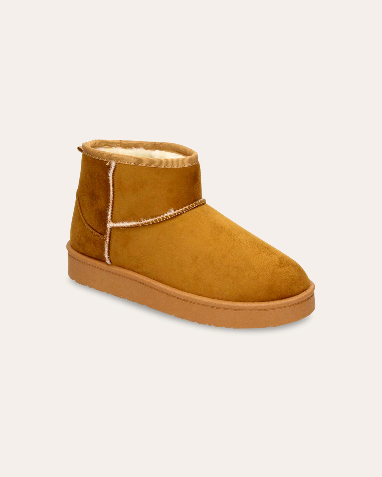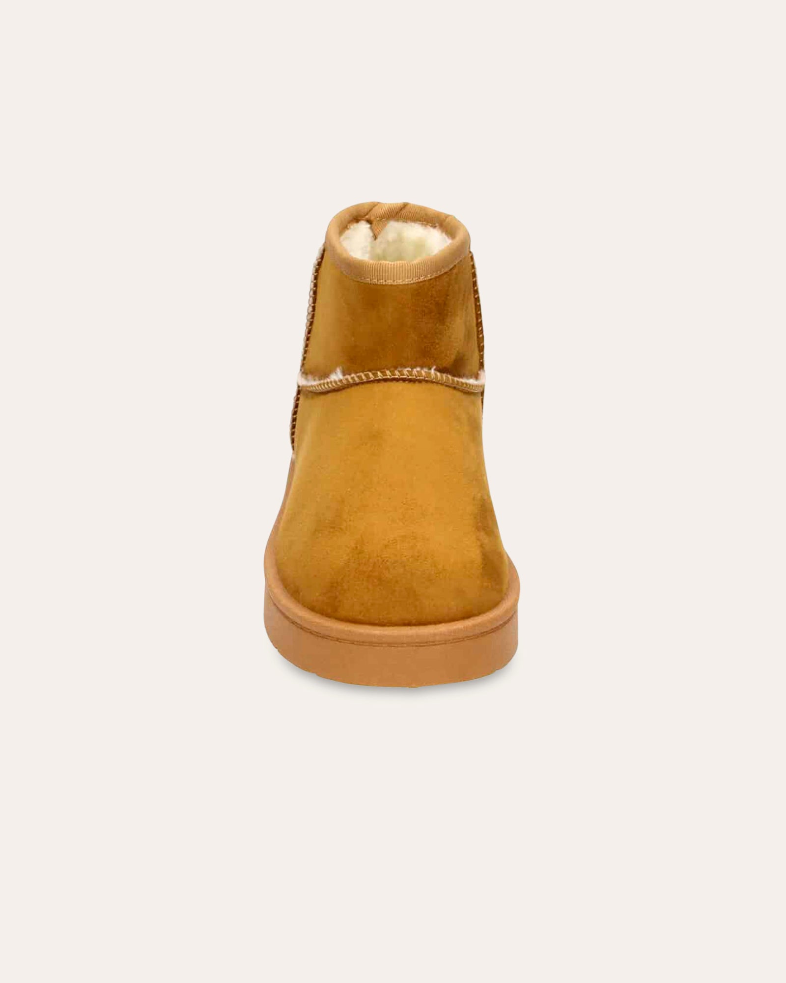 Stivaletti impermeabili, morbidi e confortevoli con tomaia in effetto scamosciato color cammello e fodera interna in eco-pelliccia calda e termoisolante.