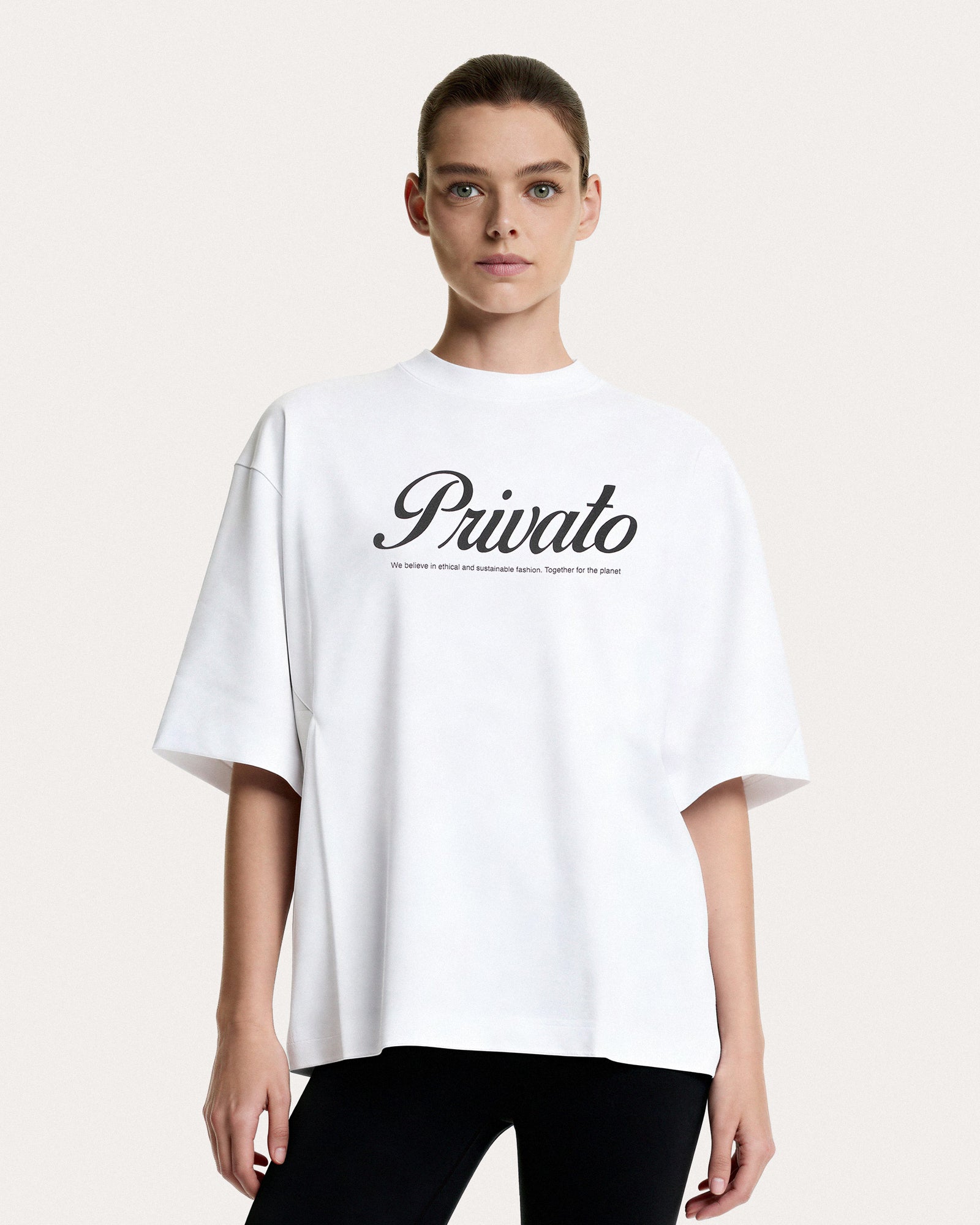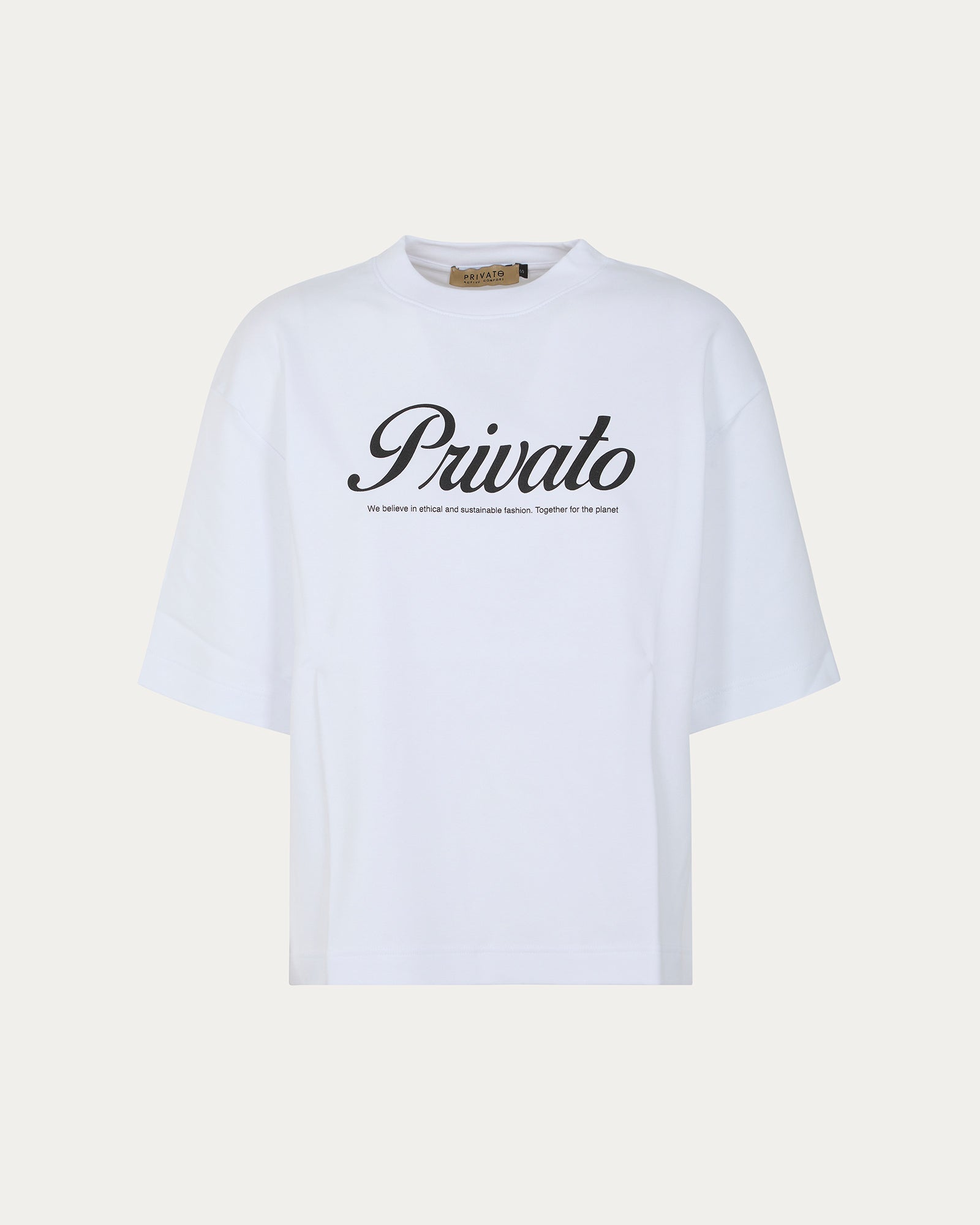 Questa è una t-shirt statement che rappresenta perfettamente i valori e la filosofia del brand Privato, ideale per chi vuole comunicare il proprio impegno verso la moda sostenibile.