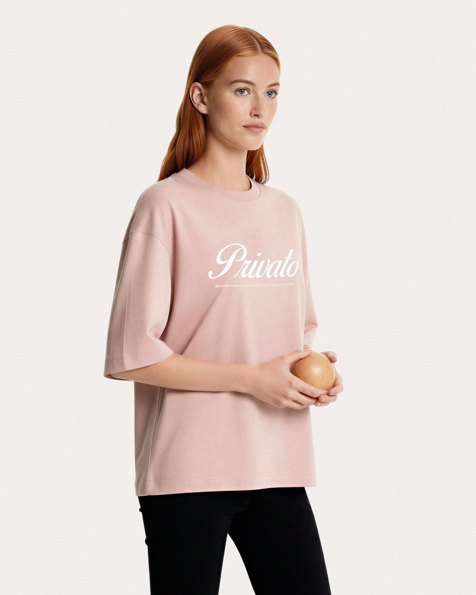 Questa è una t-shirt statement che rappresenta perfettamente i valori e la filosofia del brand Privato, ideale per chi vuole comunicare il proprio impegno verso la moda sostenibile.