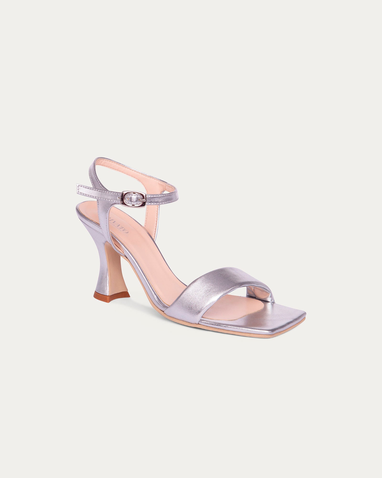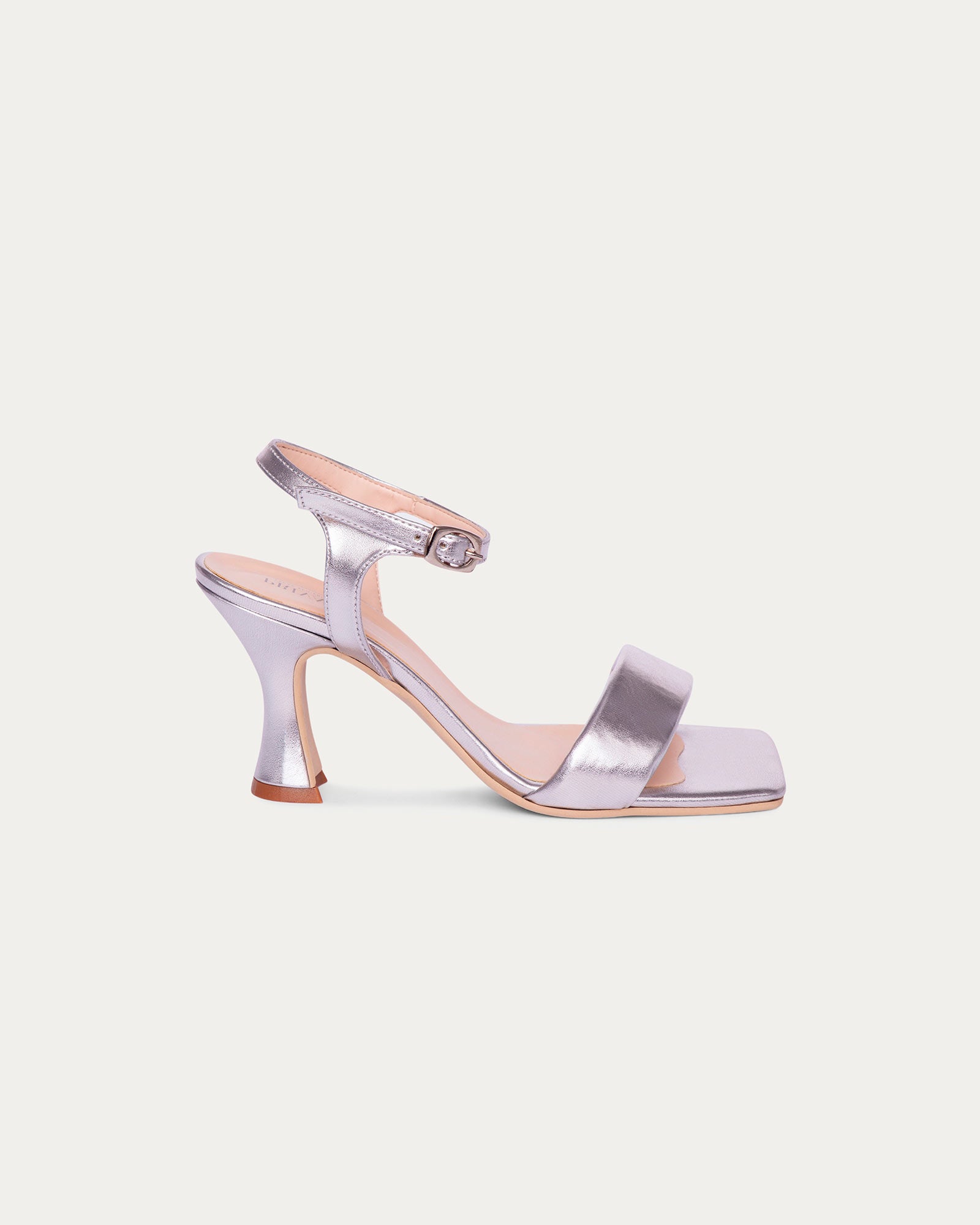 Sandali con tacco realizzati in materiale riciclato e microlite.